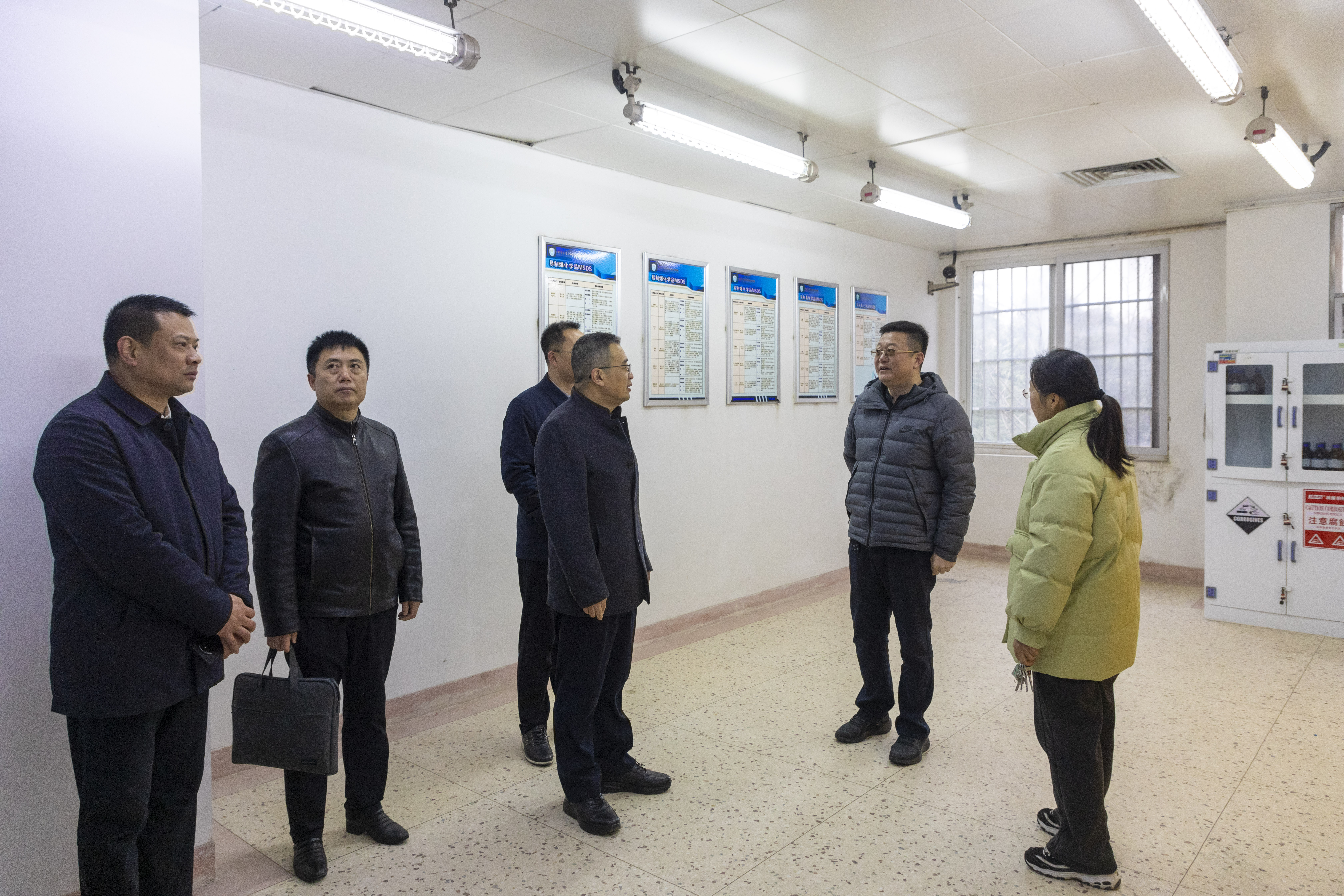 最后,调研组前往实验实训中心,重点检查了危险物品储存与管理、消防安全设施配备等情况,要求学校强化实验实训安全管理,严格落实危险物品“双人双锁”管理制度,定期开展安全风险隐患排查,加强对师生的安全操作培训,严防各类安全事故发生。