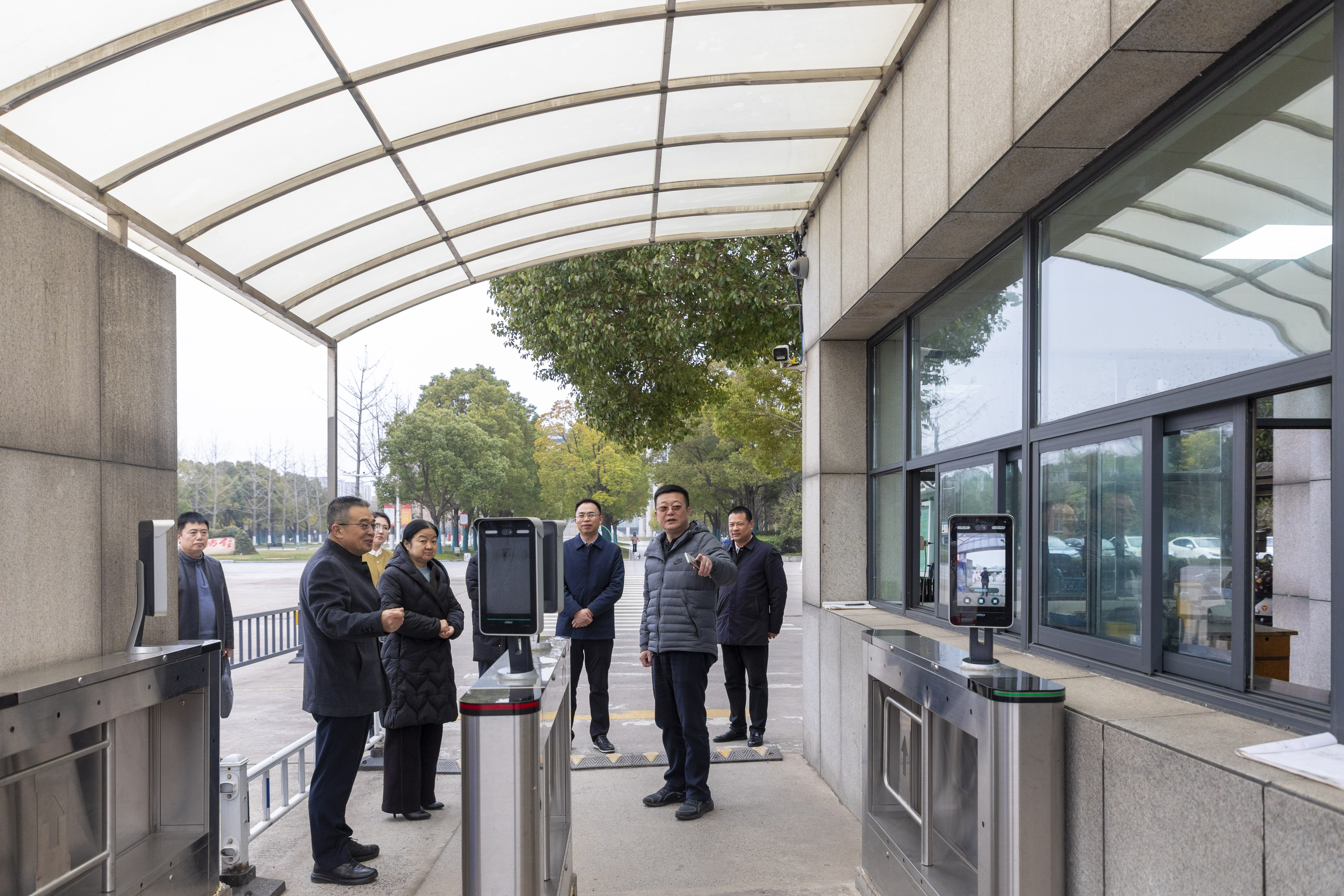 在学校大门口,调研组仔细查看了门禁管理、人员进出登记、防冲撞设施配备等情况,对学校增设闸机,主动应对上下班(学)进出拥挤情况表示肯定,并要求学校强化校园入口管控,严把“入门关”,筑牢校园安全第一道防线。