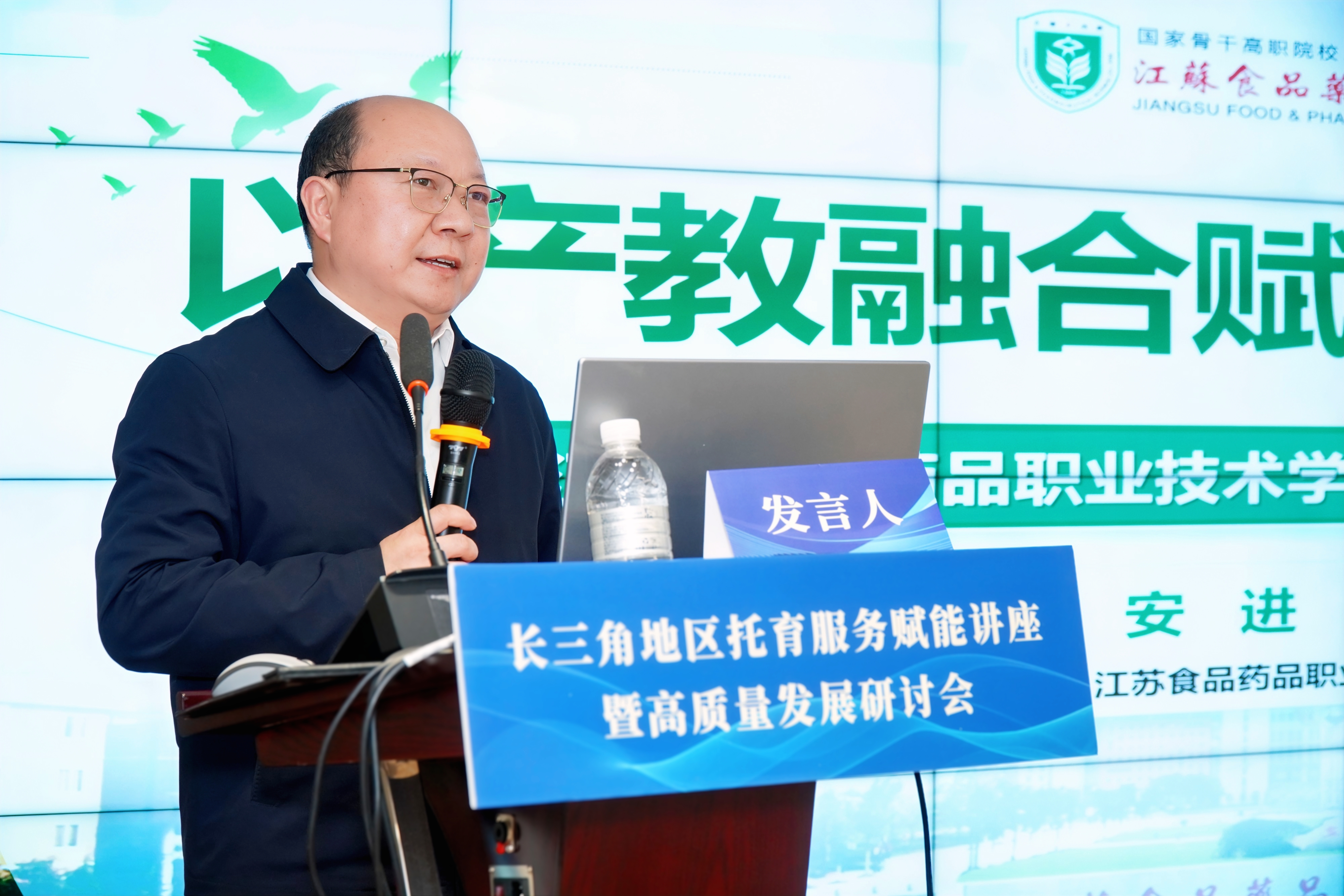 会上,安进作了题为《以产教深度融合赋能托育服务高质量发展——江苏食品药品职业技术学院托育服务创新与实践》的专题发言。结合我校在托育领域十余年的办学积淀与实践探索,安进从产教融合赋能用人单位办托、产教融合培育托育专业人才、产教融合辐射区域行业发展三个维度,详细分享了我校的创新经验与实践成果。安进的发言得到了与会领导、专家的高度认可与广泛关注,为长三角地区托育服务产教融合、协同发展提供了有益借鉴。