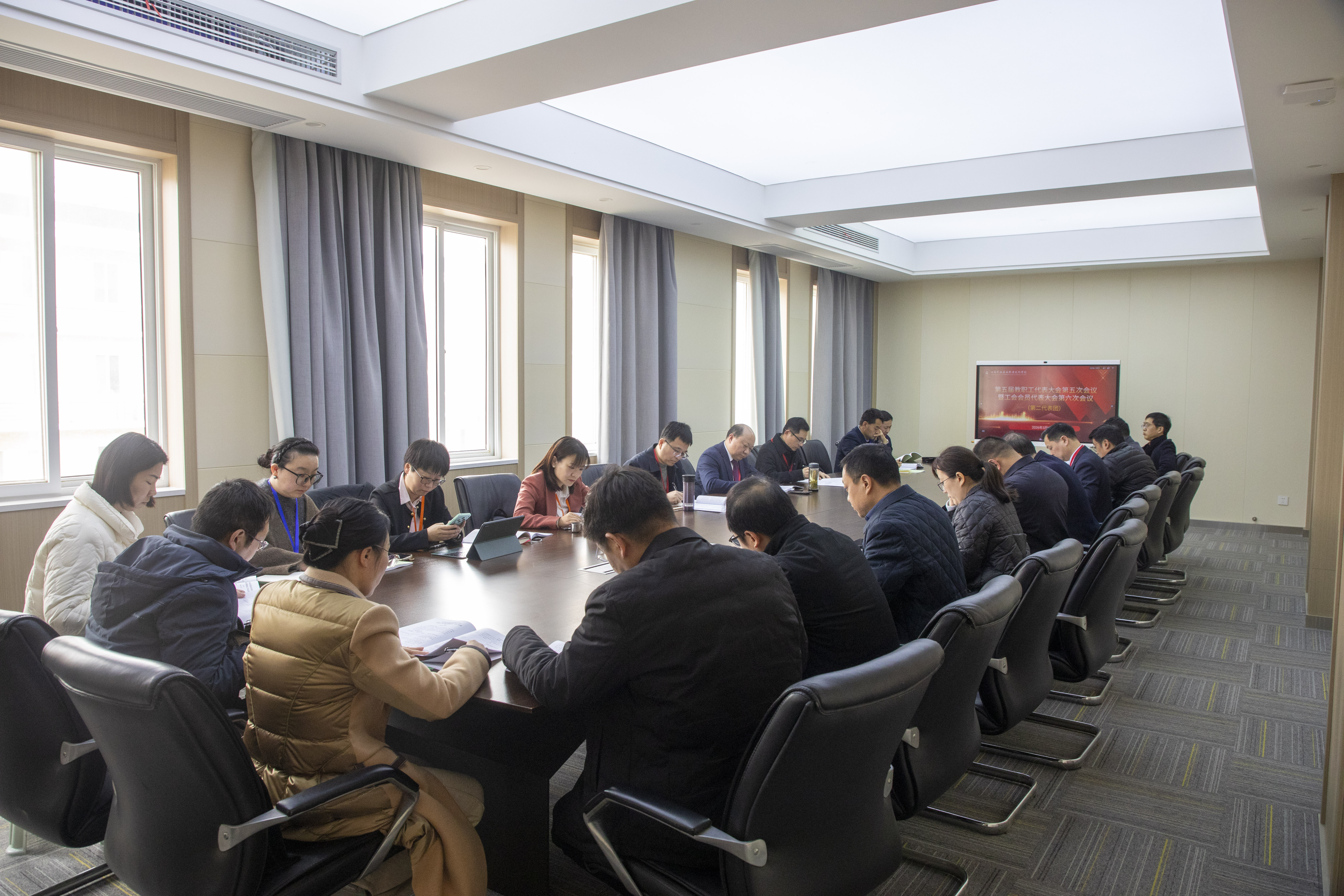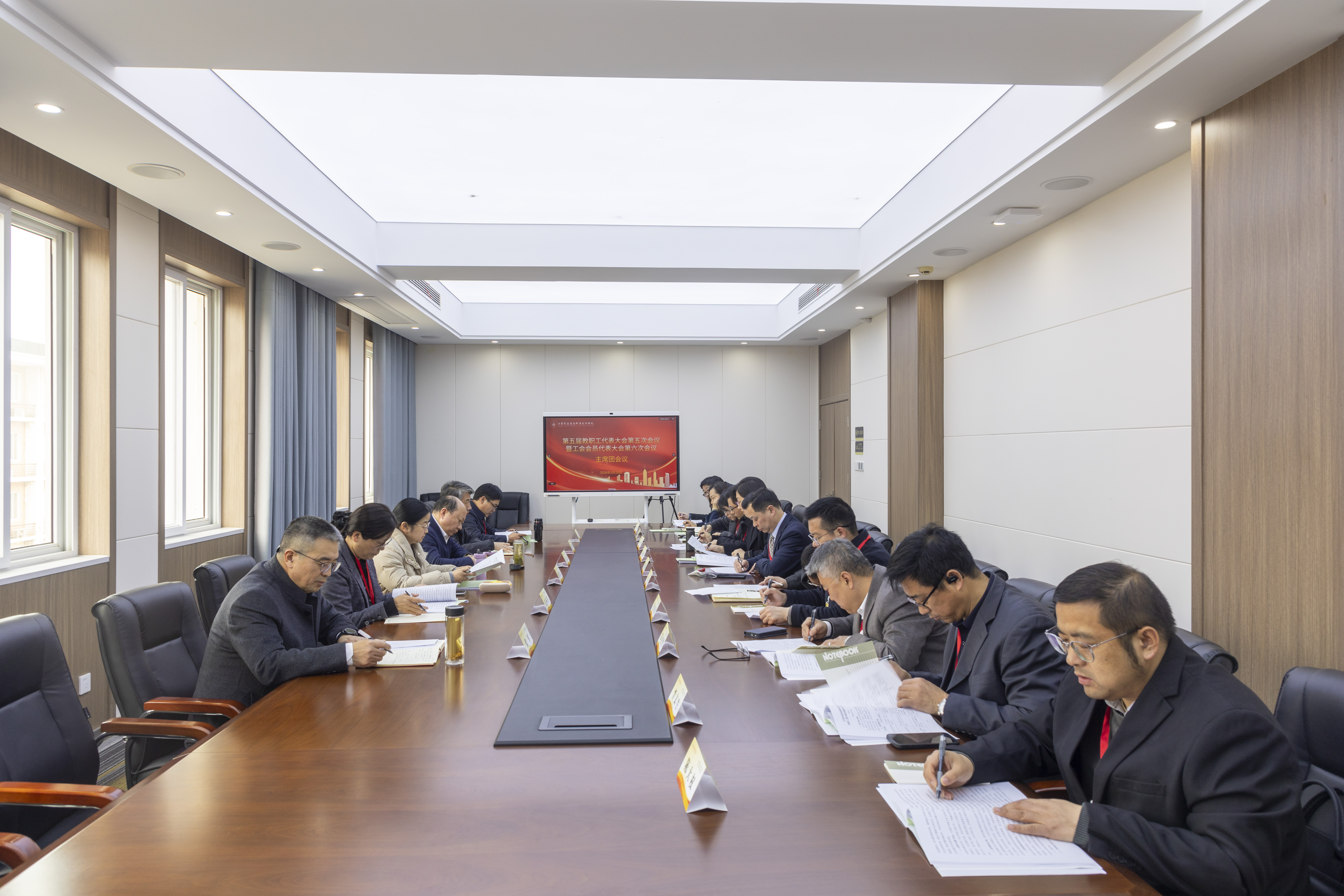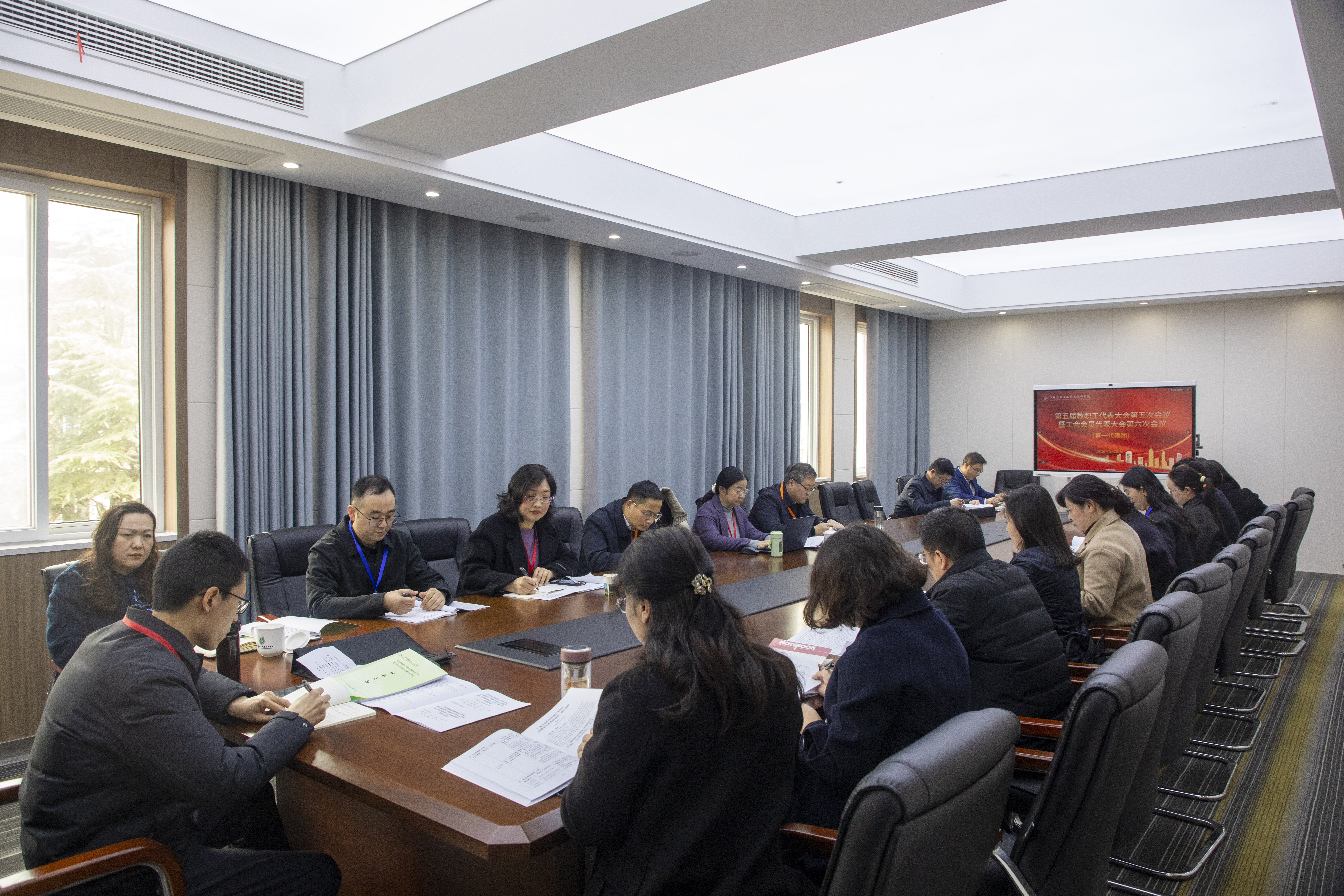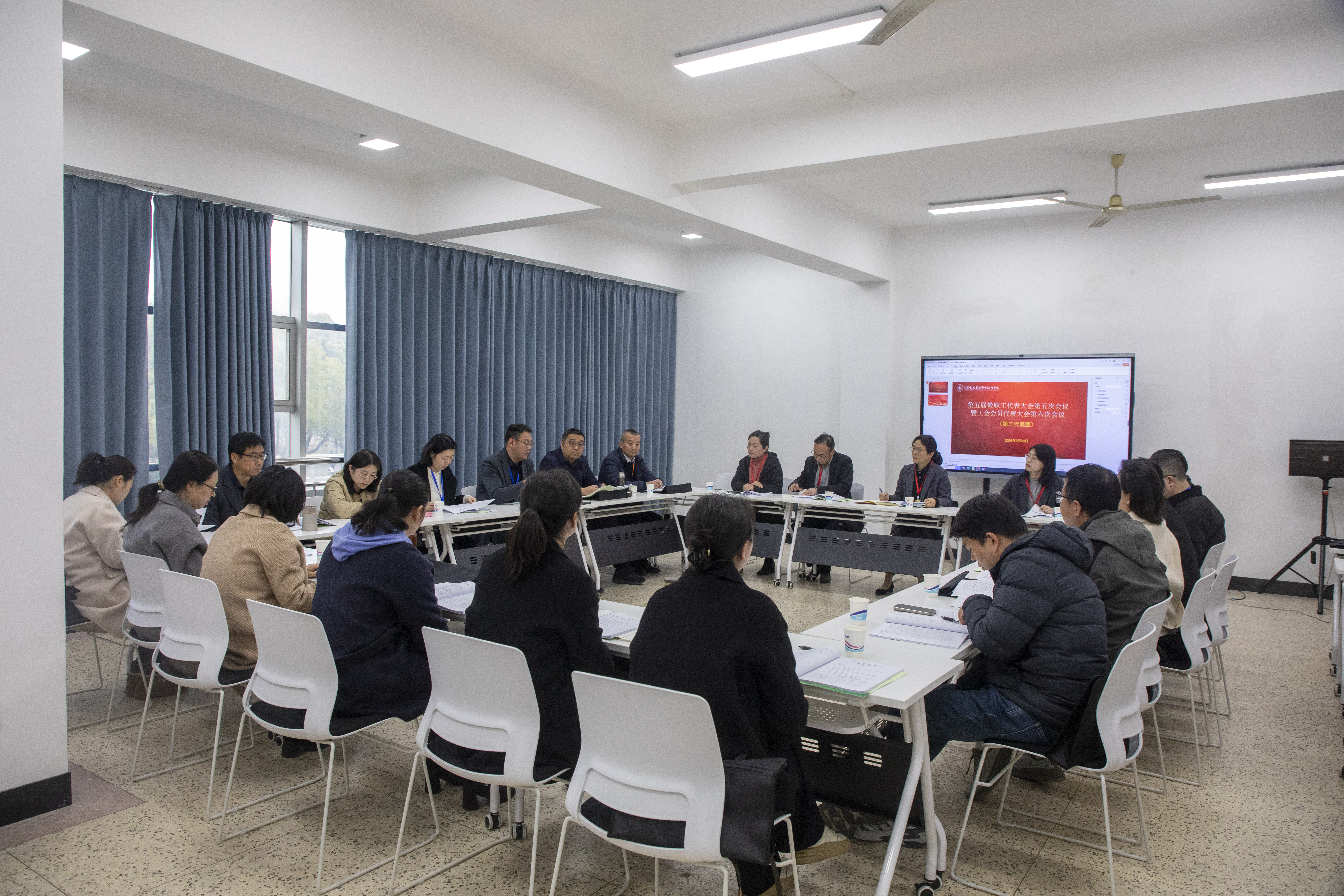 代表们听取了院办主任张丽萍作的《学校“十五五”事业发展规划》编制情况报告;审议了《学校财务工作报告》;听取了人事处处长韩善仓针对《绩效工资分配实施办法》《高质量发展激励办法》和《职称评审管理办法》修订情况进行的说明;听取了党委委员、宣传部部长、提案工作委员会主任丁正亚作的《提案工作报告》;听取了校工会副主席董道顺所作《工会工作报告》和《工会经费使用管理办法》修订说明;听取了工会经费审查委员会主任滕建林作的《学校工会经费审查工作报告》。