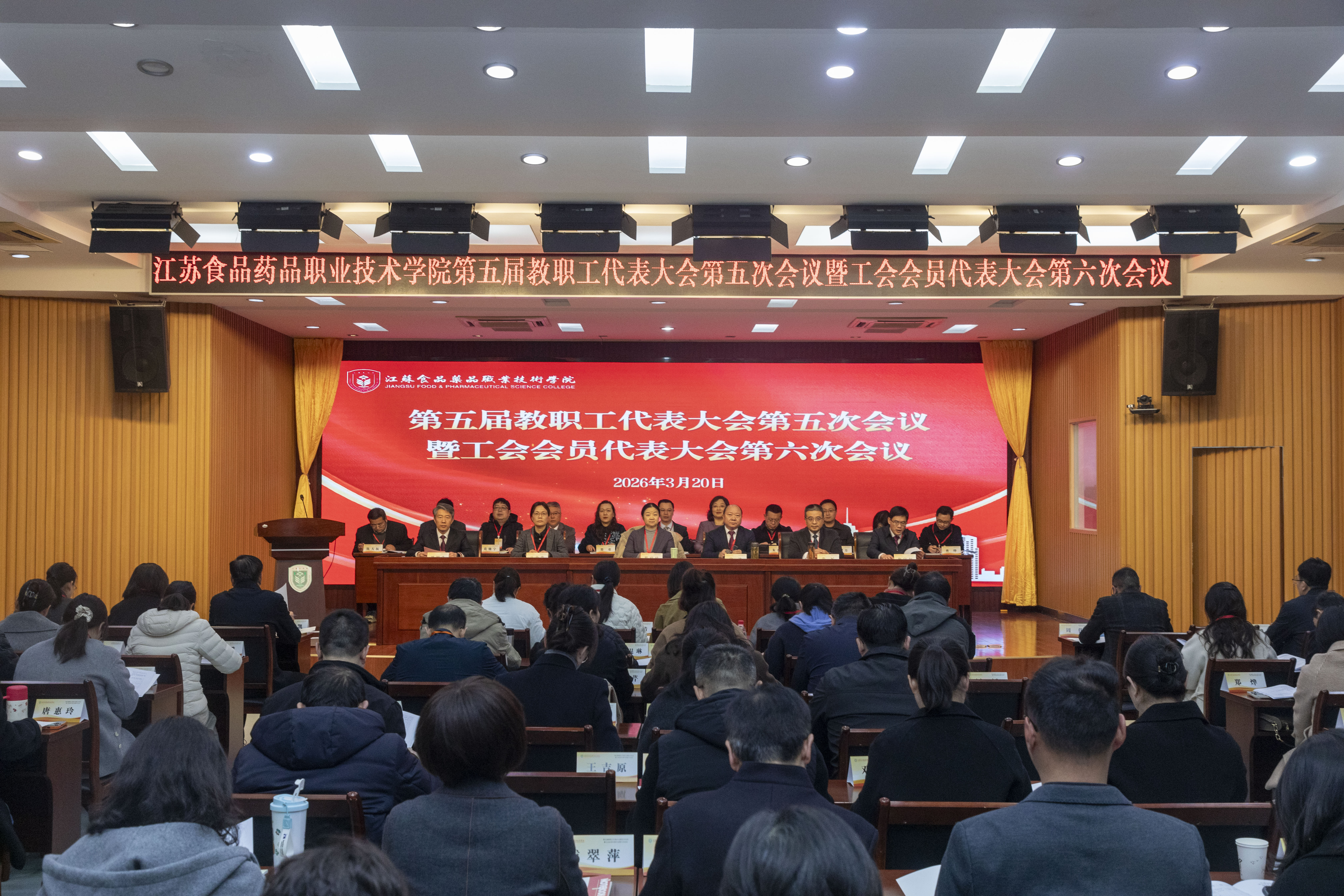 3月20日,我校召开了第五届教职工代表大会第五次会议暨工会会员代表大会第六次会议,全体校领导出席会议。全体“双代会”代表欢聚一堂,总结过往、凝聚共识,共绘学校新时代发展蓝图。大会由副校长贾韶千主持。