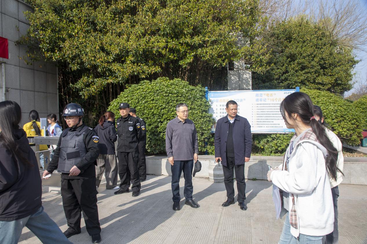淮安市教育局副局长朱士东、淮安市考试院院长杨玉楼,我校副校长贾韶千、张军深入考试现场,实地查看考场设置、考务组织、应急处置等各项工作落实情况,对考试全过程进行巡视与指导,全力保障考试平稳有序进行。考试期间,校园秩序井然,全体工作人员恪尽职守、各司其职,考生认真审题、规范作答,考风考纪优良。