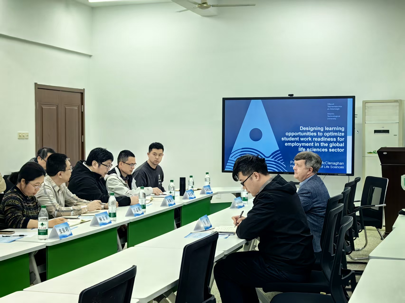 为深化我校中外合作交流、推动国际化建设向更高质量发展,3月31日,国际与港澳台合作交流处、国际教育学院联合药学院,邀请我校中外合作办学合作单位——爱尔兰大西洋理工大学生命科学学院院长MC CLENAGHAN NEVILLE HUGO,面向中外合作办学项目任课教师及相关教学管理人员,举办了题为“Designing Learning Opportunities To Optimize Student Work Readiness For Employment In The Global Life Sciences Sector”的专题讲座。讲座由药学院副院长杨宝卫主持。