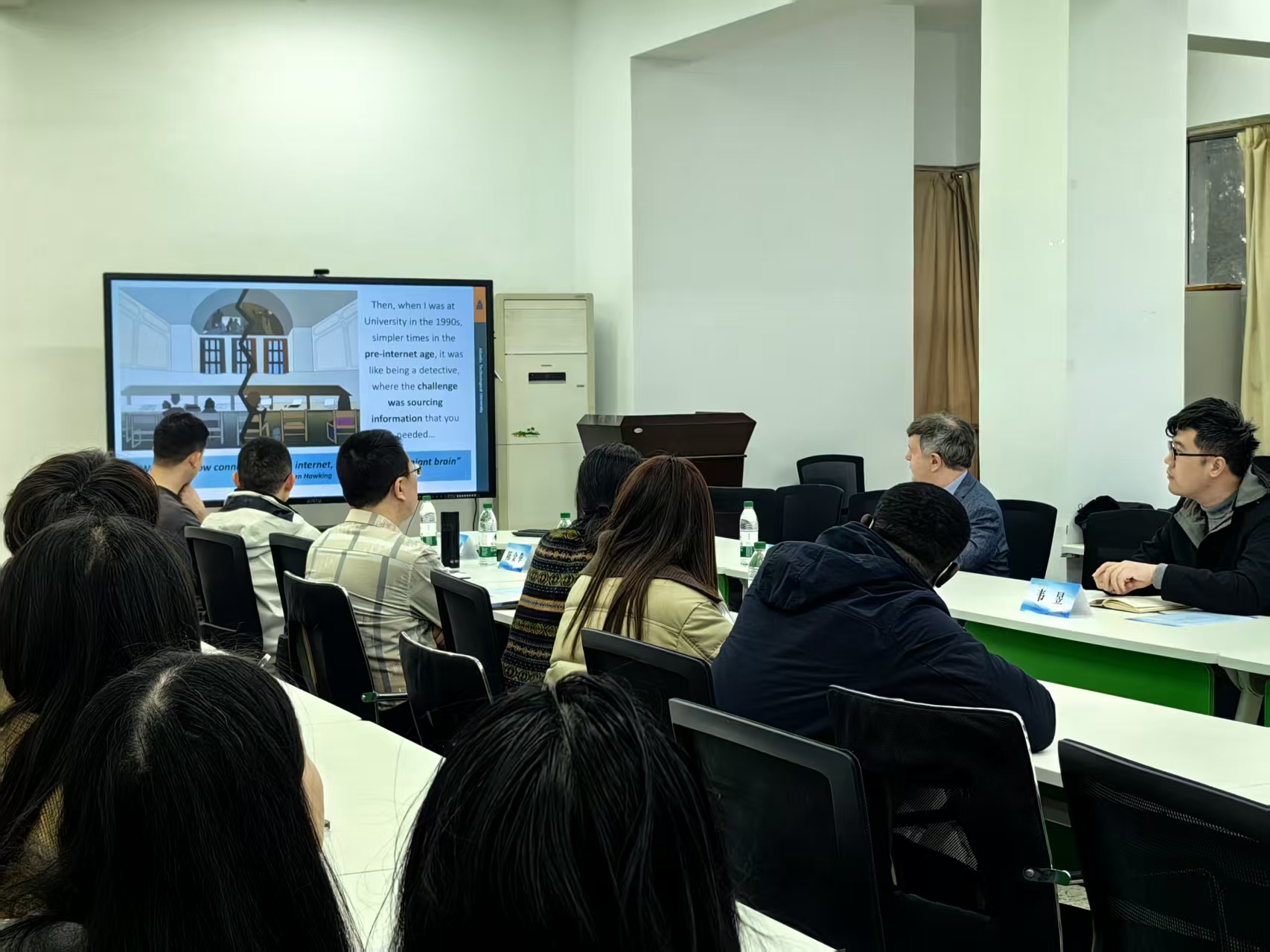 讲座中,MC CLENAGHAN NEVILLE HUGO院长分享爱尔兰大西洋理工大学药学与生命科学专业教学经验及案例。他强调在全球生命科学竞争激烈的背景下,培养学生就业能力是提升人才竞争力的关键,要精心设计学习机会,让学生具备专业知识与沟通、协作、创新能力以适应全球就业市场。任课教师和教学管理人员积极互动,提出教学实践和人才培养相关问题,院长耐心解答、深入交流,现场气氛热烈。