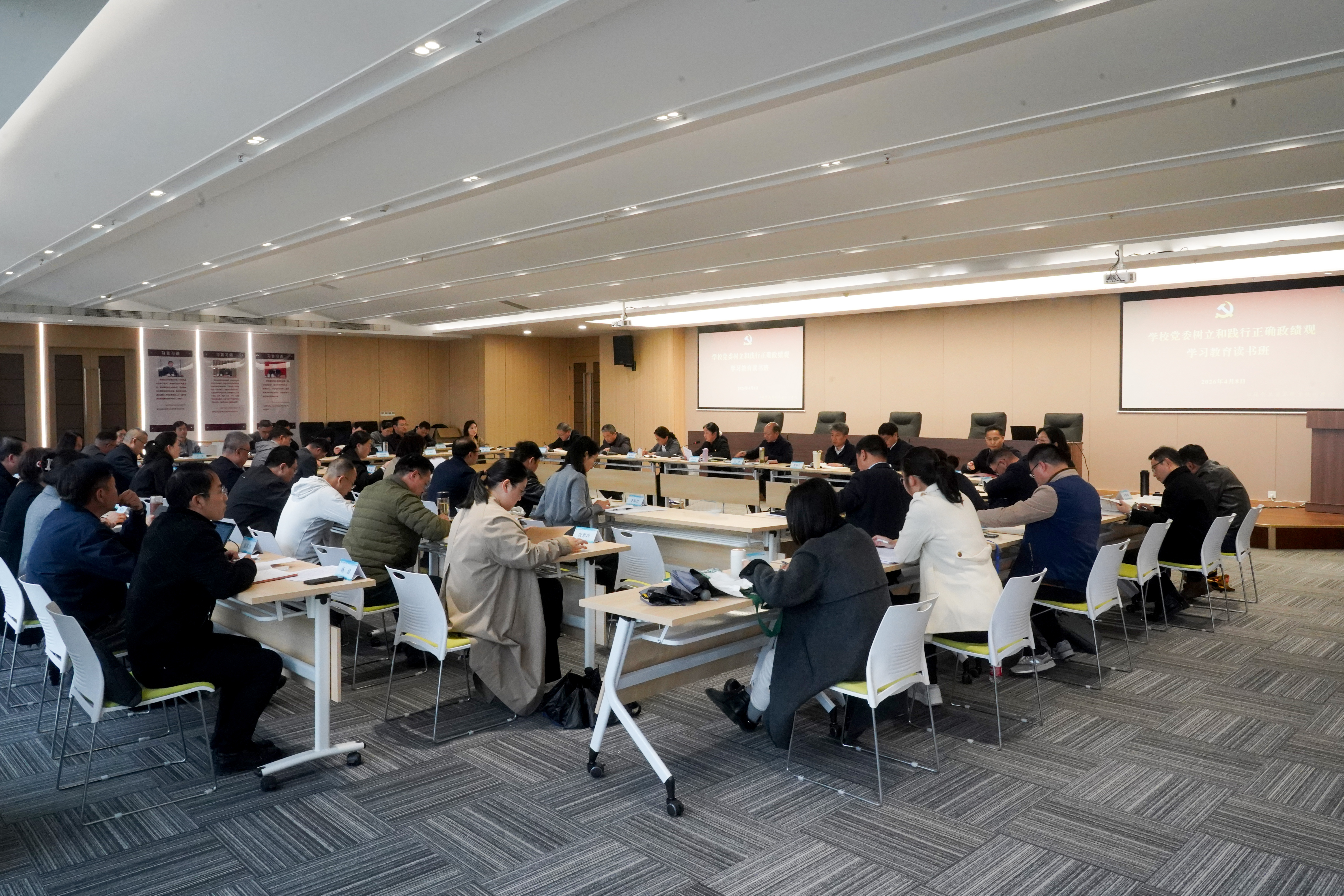 3月31日、4月7日至9日,我校党委举办树立和践行正确政绩观学习教育读书班,深入学习习近平总书记关于树立和践行正确政绩观的重要论述、重要讲话和重要指示精神,紧扣“立党为公、为民造福、科学决策、真抓实干”总要求,进一步校准思想坐标、砥砺实干作风,以正确政绩观引领和保障学校高质量发展行稳致远。校党委书记翟玮玮作开班讲话,校党委领导班子成员,各二级党组织,各部门、单位负责人参加了集中学习和交流研讨。