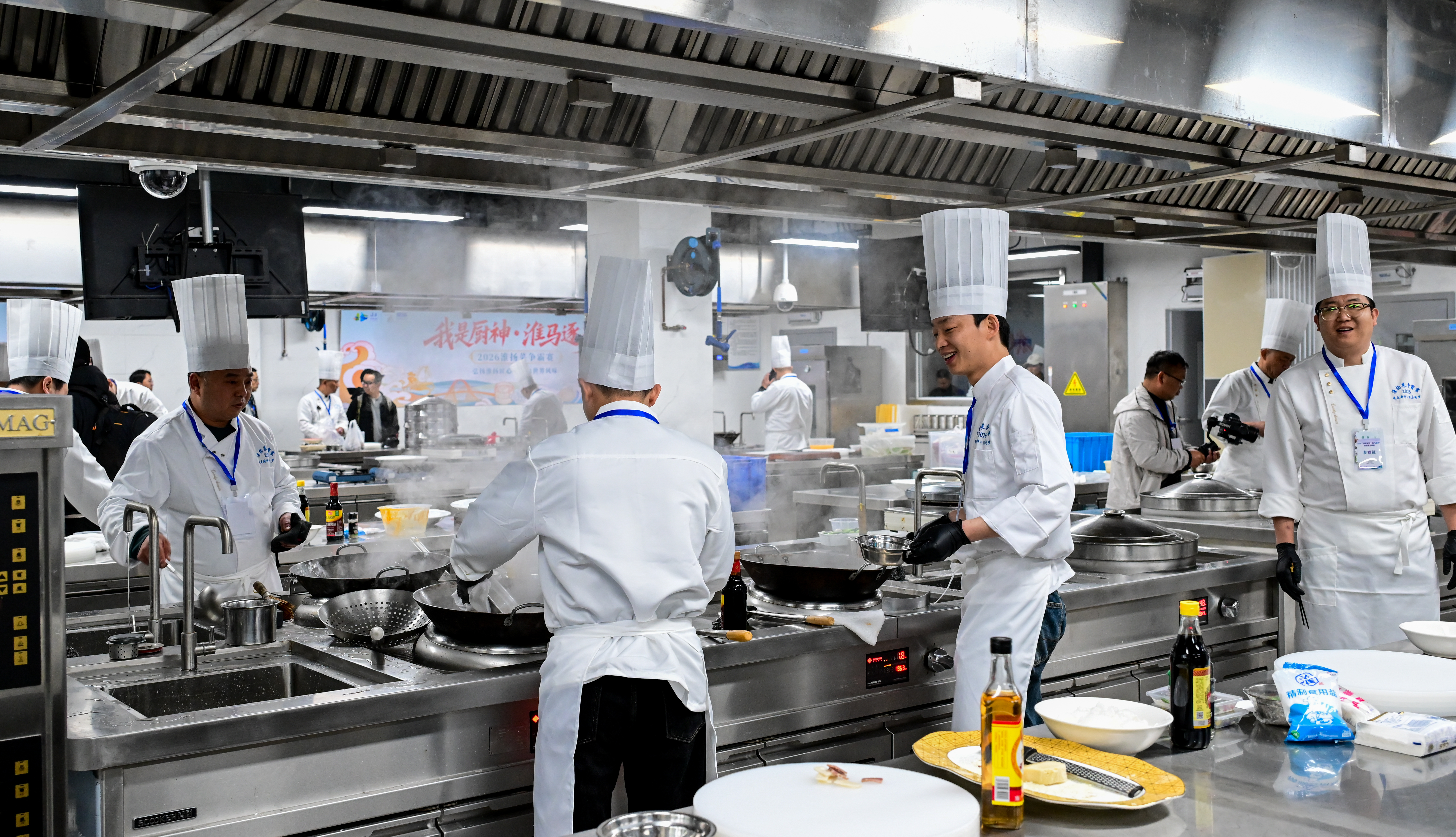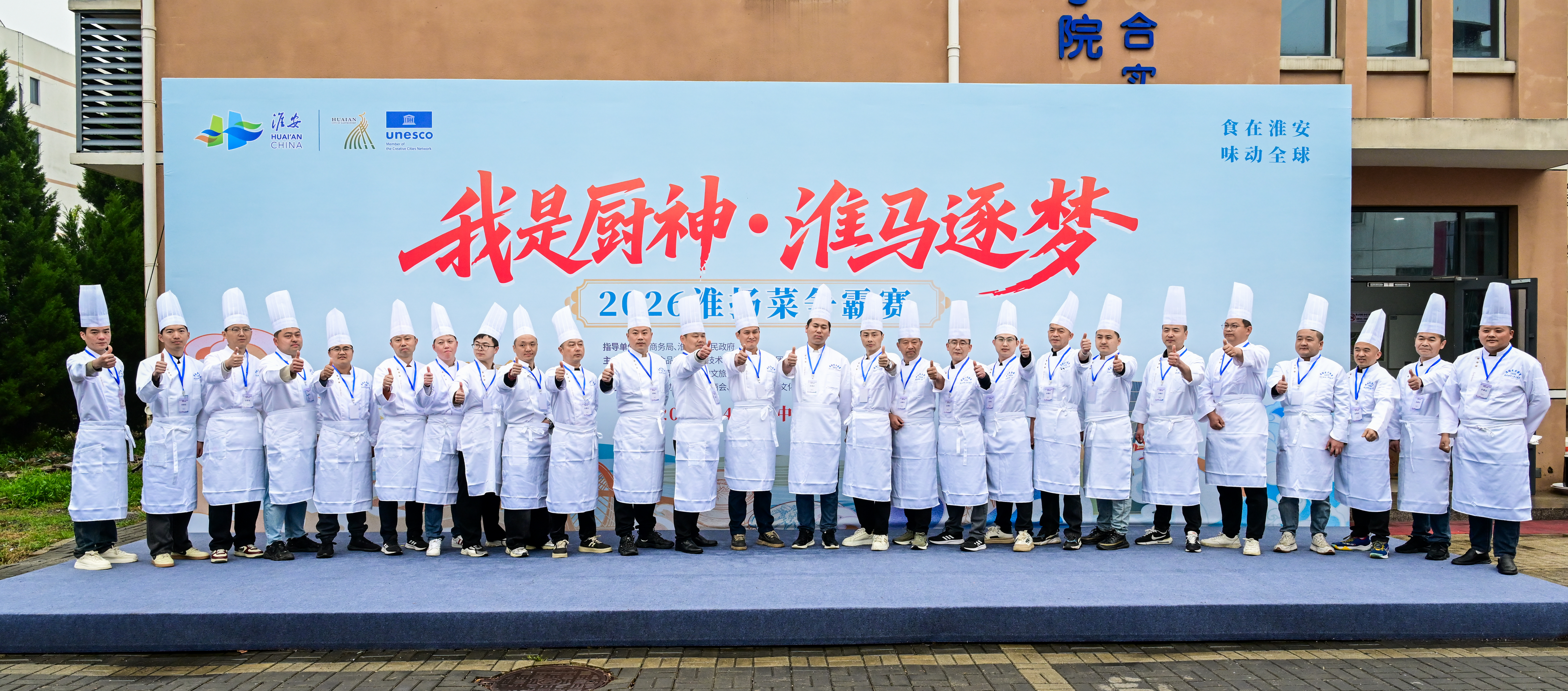 4月9日,2026年“我是厨神·淮马逐梦”淮扬菜争霸赛在我校举行。本次大赛由我校联合淮安市文化旅游集团股份有限公司、淮安市烹饪协会共同主办,吸引市内外餐饮企业骨干共一百余名选手同台竞技、以菜会友。