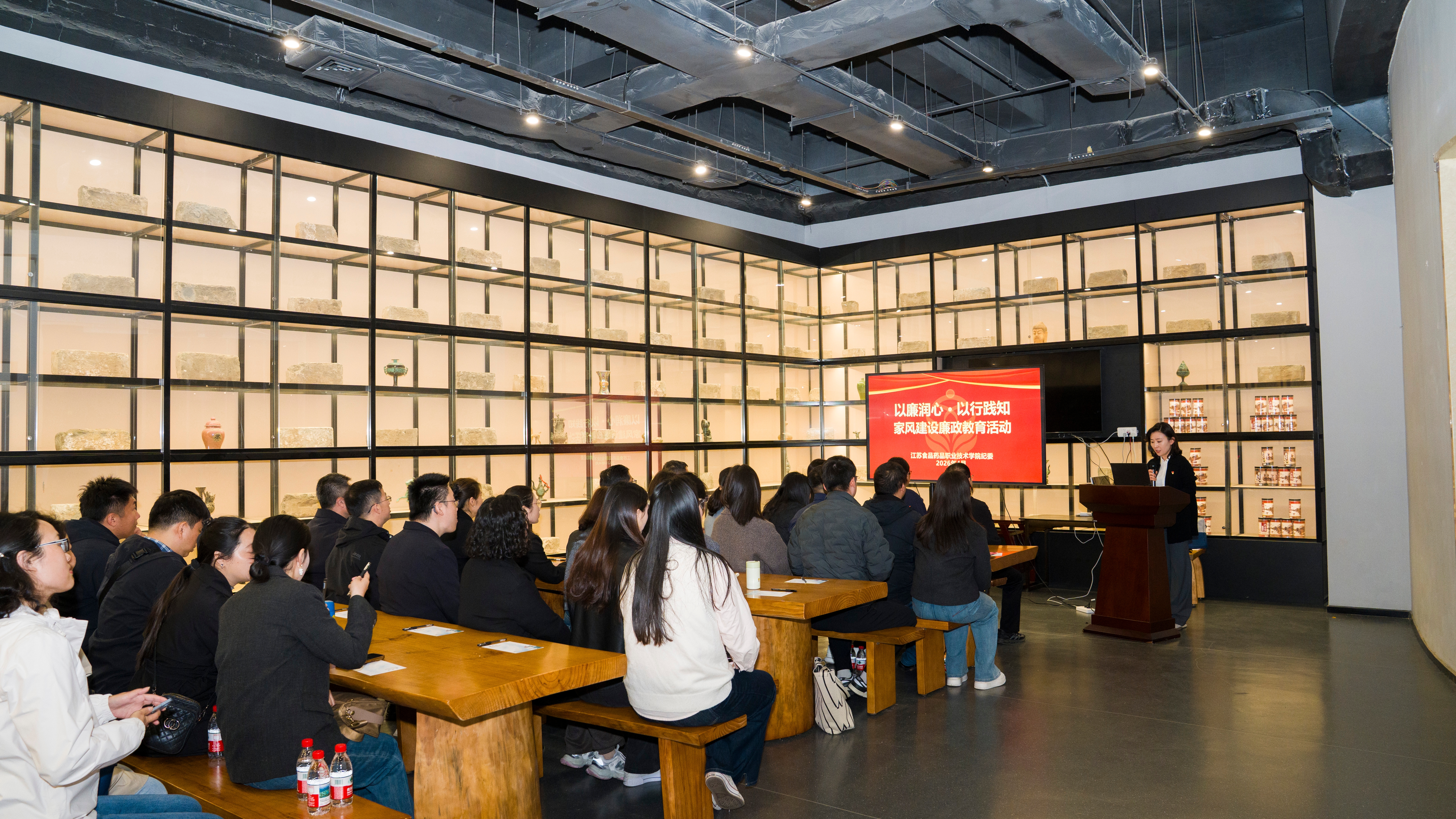 随后,全体人员走进板闸遗址教学中心,沿着古闸风云、淮上雄关、淮关制度反腐、民生兴镇等展区参观学习,共同感受古关商贸盛景,读懂运河与廉政的共生之道,讲解员结合历史脉络与正反典型案例,深入阐释“功在当代、利在千秋”的长远政绩观、“权力为民、依法用权”的履职理念,点明“廉洁是政绩底线,干净是干事前提”的深刻内涵。实境课堂上,授课老师聚焦树立和践行正确政绩观核心内涵,以淮关清廉史为镜,引导党员干部以清廉立身、以实干立业、以实绩惠民。